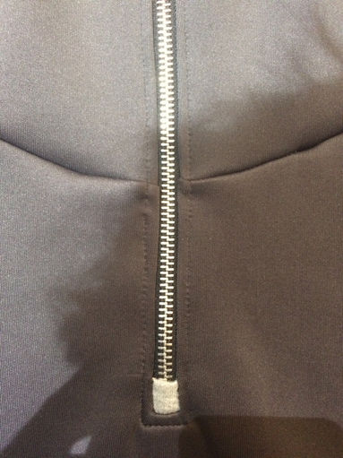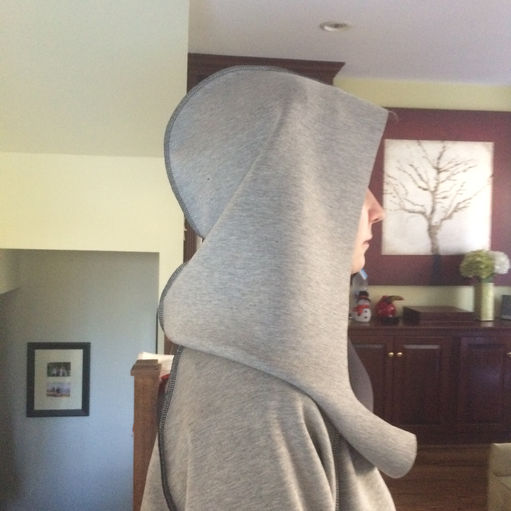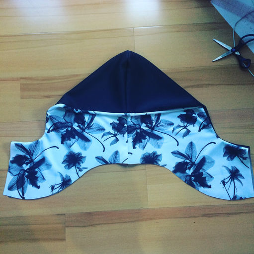 Jersey-backed neoprene half zip hoodie with contrasting hood lining. Completed Winter 2016.