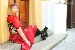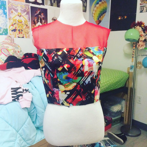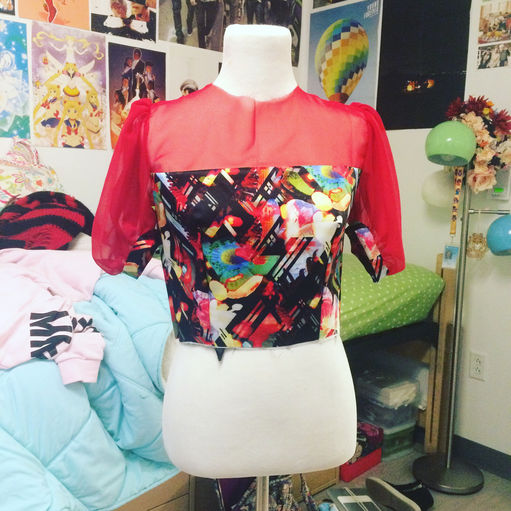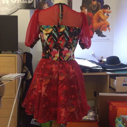 Poly chiffon and poly print party dress. Completed Winter 2016.